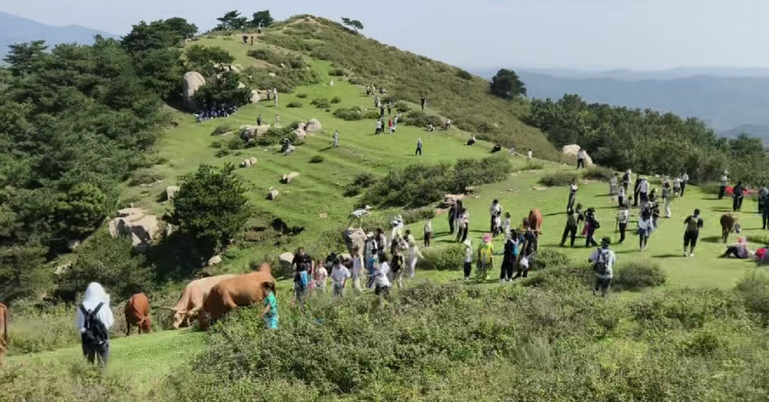 没有门票、没有缆车、没有商业化的喧嚣,有的是绿意绵延的坡地、错落的树木与岩石、悠闲啃草的牛群和原生态气息。这个被网友称为“潍坊阿勒泰”的“秘境”,成为了无数都市人心驰神往的“诗和远方”,正吸引众多游客前往探访。国庆期间,紫草岭高山高峰期日均游客量达三四百人,不少游客从青岛、淄博等地专程驱车前来,只为打卡这片“藏在深山人未识”的美景。