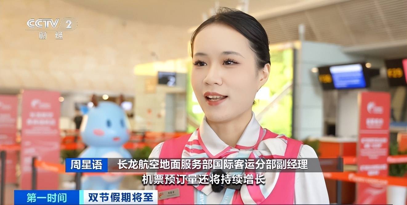 长龙航空地面服务部国际客运分部副经理 周星语:随着假期的临近,机票预订量还将持续增长,尤其是一些热门城市和旅游目的地的机票可能会更加紧俏。